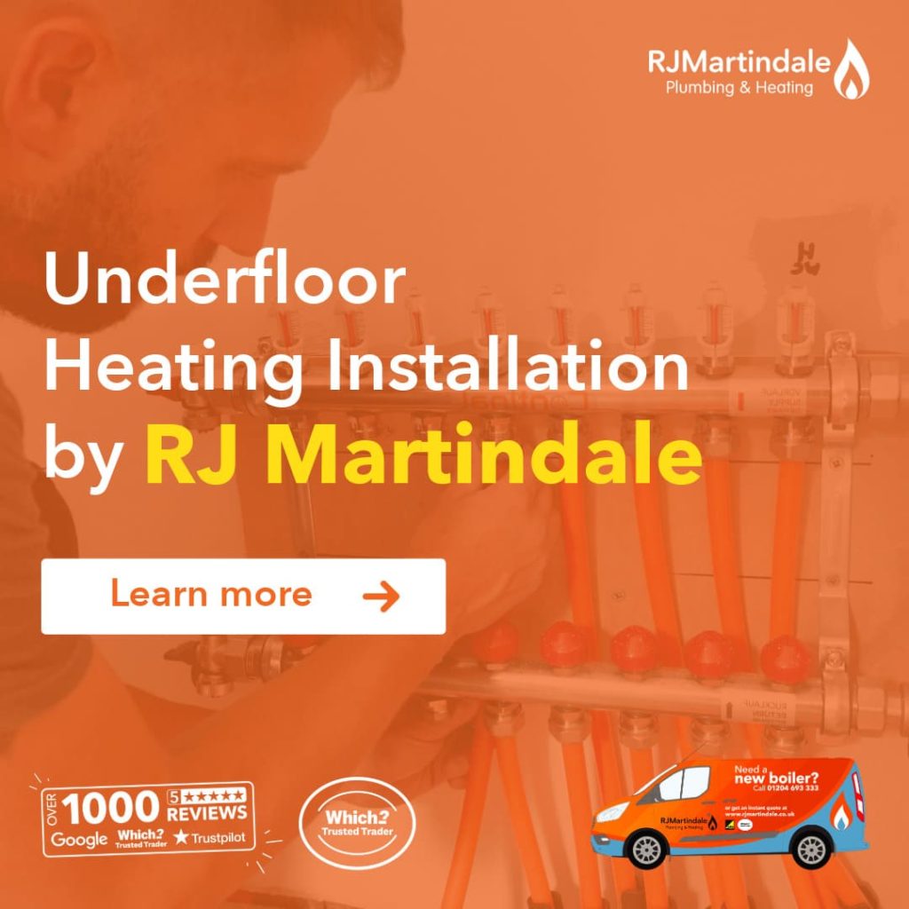 As a Which? Trusted Trader, RJ Martindale’s team of gas engineers and plumbers in Bolton, Horwich, Chorley and Preston has over 1000 5 star customer reviews, delivering reliable wet underfloor heating services with outstanding customer service.